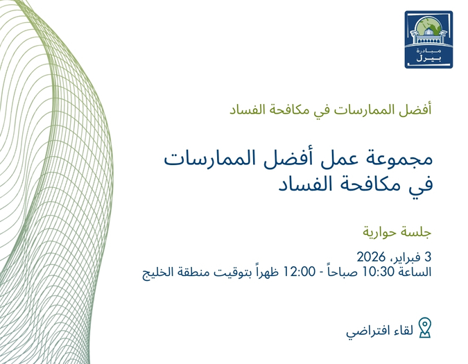 جلسة حوارية افتراضية مع شركائنا المؤسسيين وأعضاء مجموعة العمل، والتي تشمل مجموعة stc ومجموعة شلهوب، وشركة دانة غاز وشركة اتحاد المقاولين (CCC)، بالإضافة إلى شركة مارش ومجموعة تمر، وسيركز النقاش على ممارسات الحوكمة المؤسسية.