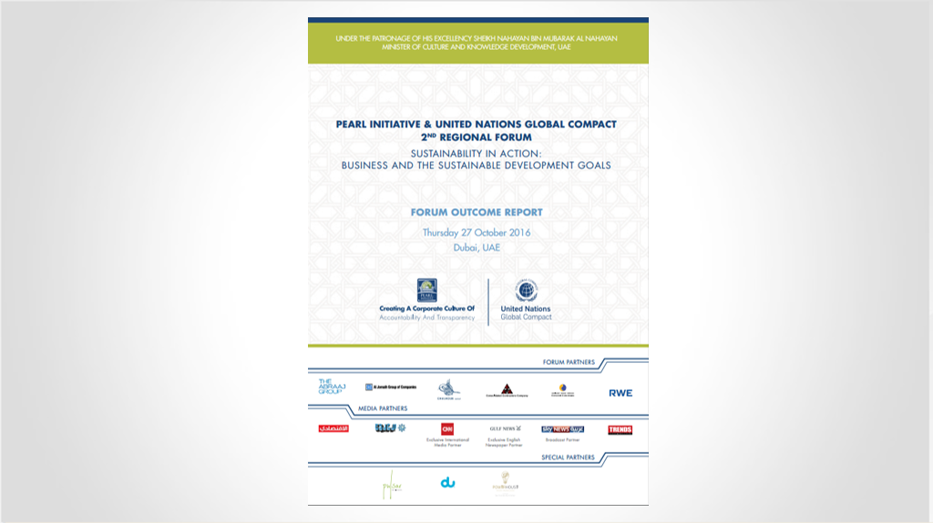 يسلط التقرير الضوء على نتائج المنتدى الإقليمي الثاني لمبادرة بيرل والميثاق العالمي للأمم المتحدة والذي عقد بتاريخ 27 اكتوبر 2016.